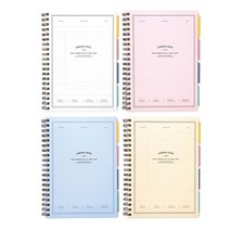 코넬인덱스 노트 4권세트 4분류 하드커버 트윈링 유선 과목 필기 스프링 공책 120매, 1세트